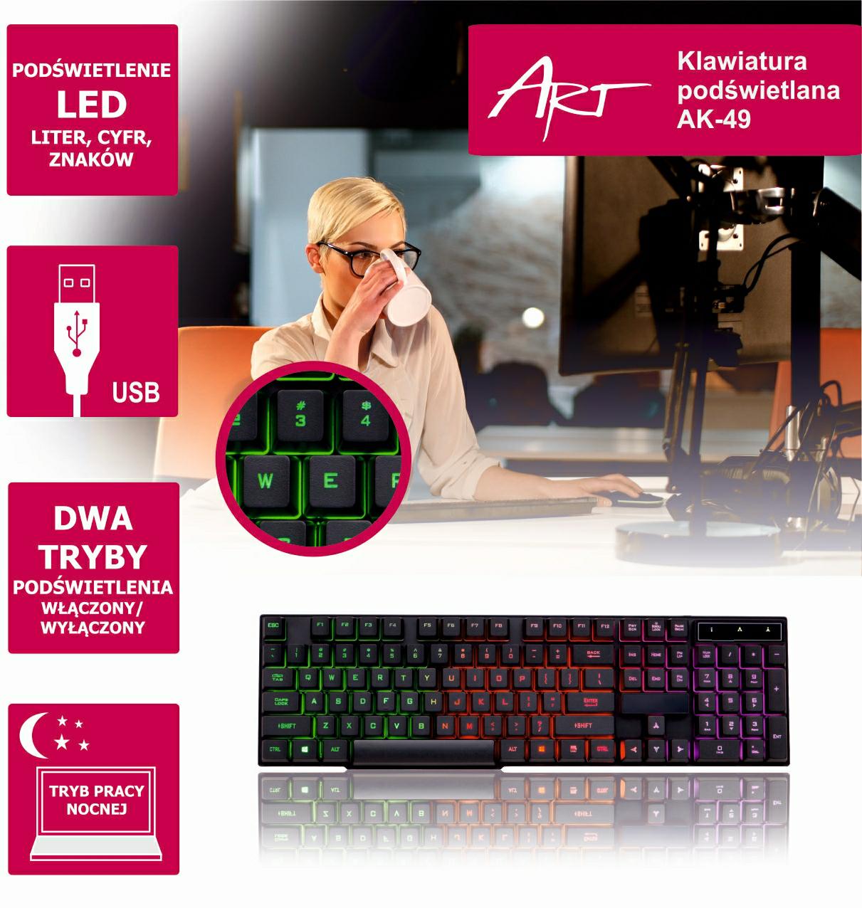 ART Klawiatura USB AK49 podświetlana podświetlana