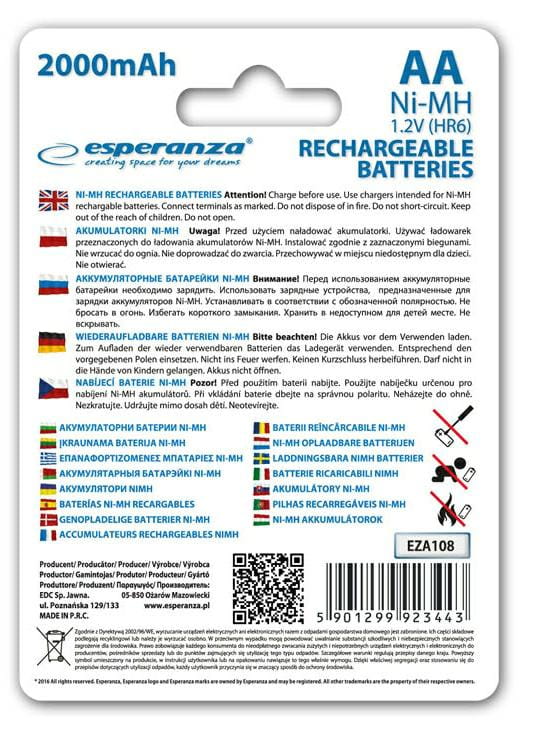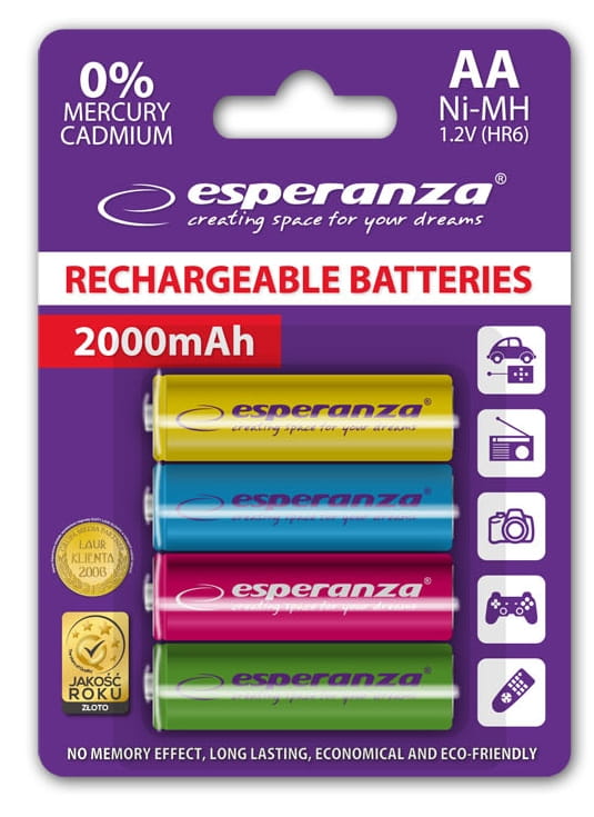 ESPERANZA Akumulator R6 AA 2000mAh kolor EZA108 kolorowe