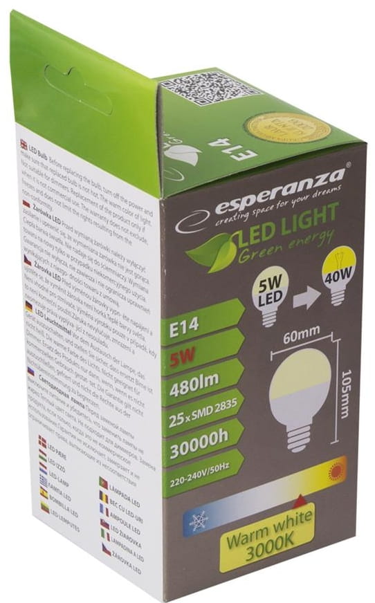 ESPERANZA Żarówka LED E14 5W ELL115 KULA