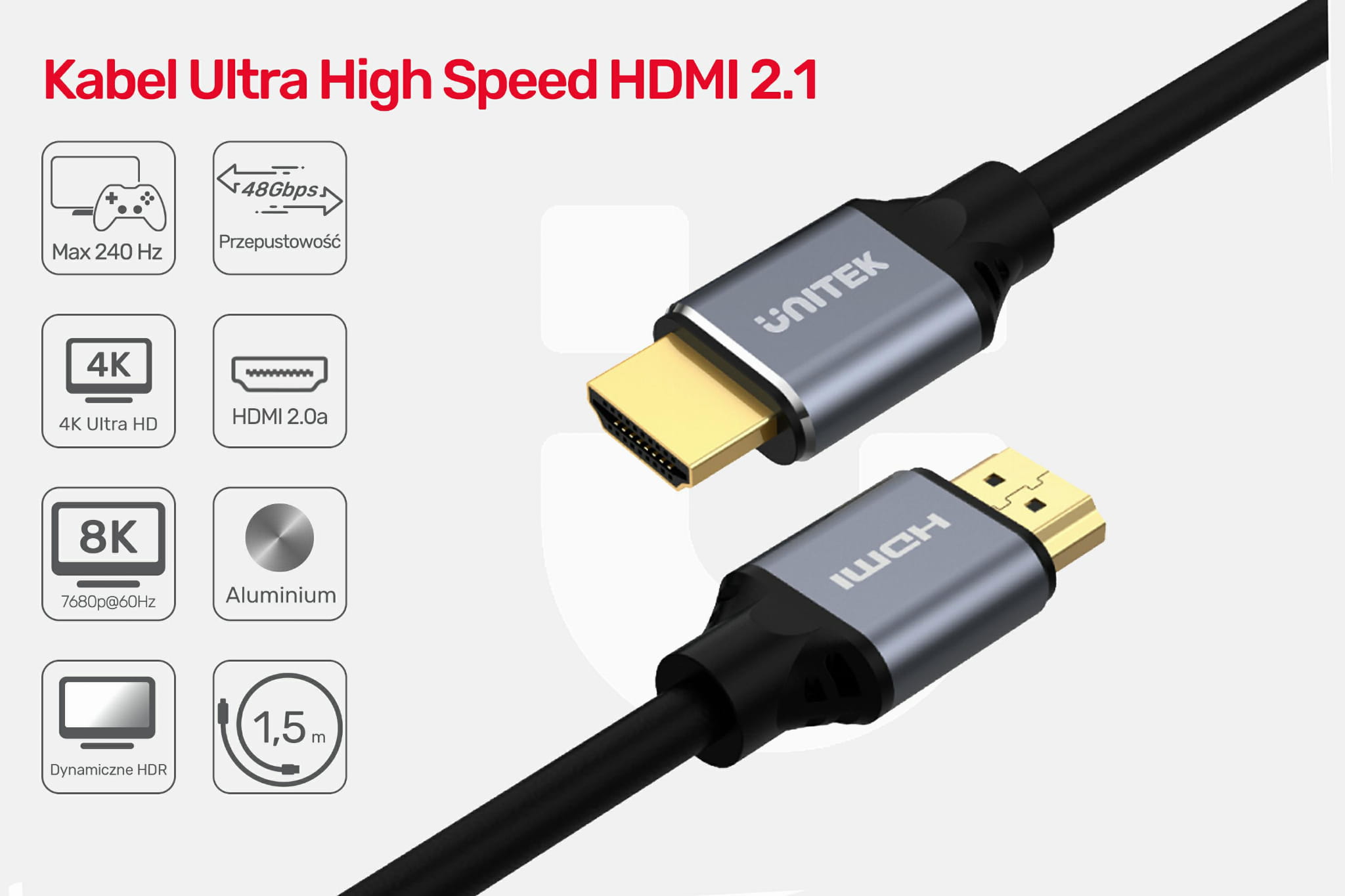 UNITEK Kabel HDMI-HDMI 1,5m 2,1 8K C137W